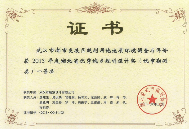 地調(diào)獲獎(jiǎng)證書(shū)