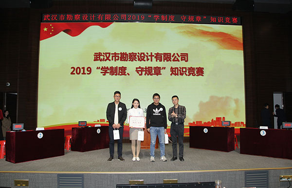 按照競賽規(guī)則,比賽分預(yù)賽和決賽兩個(gè)階段進(jìn)行,比賽由個(gè)人必答題、小組必答題和搶答題三個(gè)環(huán)節(jié)組成,比賽題目內(nèi)容涵蓋了公司企業(yè)文化、《績效目標(biāo)管理辦法》、《差旅費(fèi)管理辦法》、《合同管理辦法》、《員工崗位歸級管理暫行辦法》、《安全生產(chǎn)與文明施工管理規(guī)定》等公司核心管理制度的內(nèi)容。預(yù)賽階段,12支參賽隊(duì)伍以飽滿的熱情、昂揚(yáng)的斗志、團(tuán)結(jié)的作風(fēng)、拼搏的精神,為大家獻(xiàn)上了一場緊張激烈、精彩紛呈的知識競賽,各隊(duì)比分也一度不相上下,經(jīng)過近一個(gè)小時(shí)的緊張角逐,巖土工程二公司、臨空分公司、設(shè)計(jì)中心3支代表隊(duì)分別以小組第一名的成績進(jìn)入決賽。預(yù)賽結(jié)束后的間隙休息時(shí)段,同時(shí)設(shè)置了觀眾互動答題環(huán)節(jié),讓現(xiàn)場觀眾共同參與答題,賽場氣氛熱烈。決賽環(huán)節(jié)更是高潮迭起、扣人心弦,3支代表隊(duì)的選手配合默契、沉著冷靜、對答如流,在小組必答題環(huán)節(jié)也是穩(wěn)打穩(wěn)扎,不急不躁,各隊(duì)的比分差距較小。最終經(jīng)過兩輪比拼,設(shè)計(jì)中心代表隊(duì)以240分的高分榮獲團(tuán)體一等獎,臨空分公司代表隊(duì)榮獲團(tuán)體二等獎,巖土工程二公司代表隊(duì)榮獲團(tuán)體三等獎。公司董事長廖建生、總經(jīng)理施木俊、副總經(jīng)理安永強(qiáng)分別為獲獎選手頒發(fā)了榮譽(yù)證書和獎品。