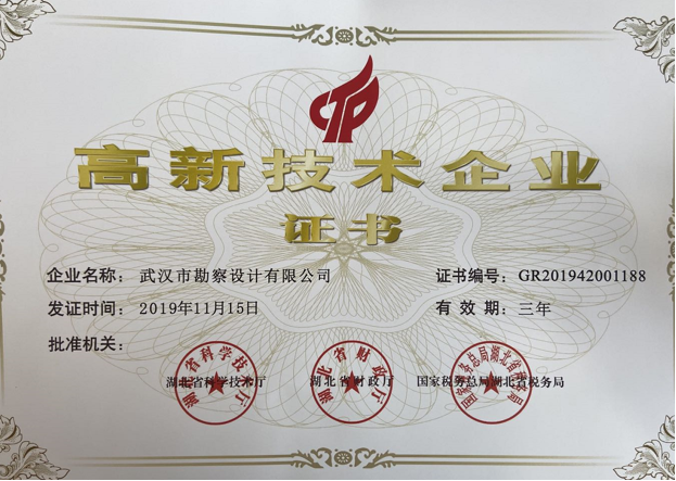2020年7月8日,我司國家高新技術(shù)企業(yè)再認(rèn)證申報材料順利通過湖北省科學(xué)技術(shù)廳、湖北省財政局和國家稅務(wù)總局湖北省稅務(wù)局最終審核,再次取得了國家高新技術(shù)企業(yè)證書,為我司今后能夠順利承接各類建設(shè)工程項目提供了有力的保障。