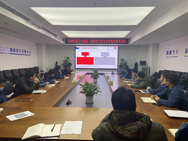 李為工程師主要介紹了《武漢軌道交通工程施工測量管理辦法》、《武漢軌道交通工程監(jiān)控量測管理辦法》相關內容,對軌道交通三方測量、三方監(jiān)測做了系統(tǒng)性介紹,從技術要點和管理辦法等方面進行了深入細致地講解。培訓過程中,部門相關項目負責人就各自工作中實際遇到的一些問題進行了熱烈的討論。