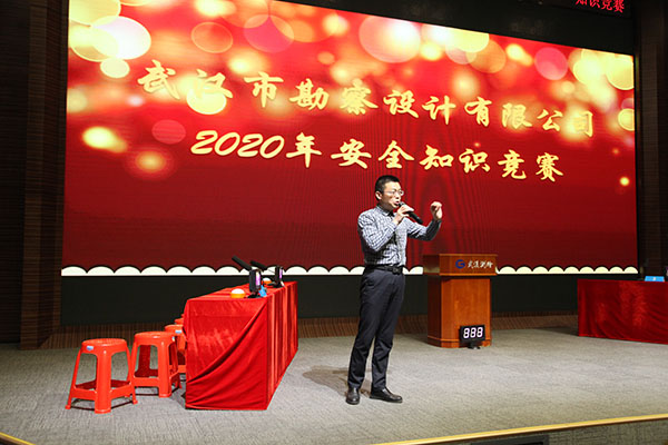 為進(jìn)一步增強(qiáng)公司廣大員工的安全意識(shí),按照武漢城建集團(tuán)《安全生產(chǎn)專(zhuān)項(xiàng)整治三年行動(dòng)方案》要求,結(jié)合公司“安全生產(chǎn)強(qiáng)化年”活動(dòng)部署,11月30日下午,公司在測(cè)繪院307學(xué)術(shù)報(bào)告廳舉辦2020年度“安全伴我行、知識(shí)在我心”安全知識(shí)競(jìng)賽。公司各生產(chǎn)部門(mén)積極組織員工參賽,本次競(jìng)賽共有36名選手組成12支參賽隊(duì)伍參加了此次知識(shí)競(jìng)賽。各部門(mén)負(fù)責(zé)人及員工代表共計(jì)100余人參加了此次活動(dòng),公司總經(jīng)理施木俊、副總經(jīng)理兼總工程師官善友親臨比賽現(xiàn)場(chǎng)觀(guān)看比賽。