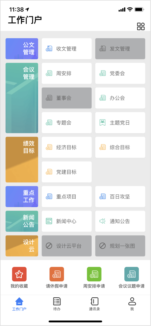 目前,該平臺成功上線了收文管理、會議管理、績效目標、重點工作、考勤管理和車輛管理功能板塊。在勘察公司信息與創(chuàng)研中心項目組成員的努力下,搭建了流轉高效、精準督辦的公文體系,大幅度提升了集團公文辦理效率;實現(xiàn)了會議管理、績效目標、重點工作等數(shù)據(jù)查看方便、跟進有序;完成了集團管理權限范圍內人員請銷假和用車的網上申報、網上審批和網上歸檔。