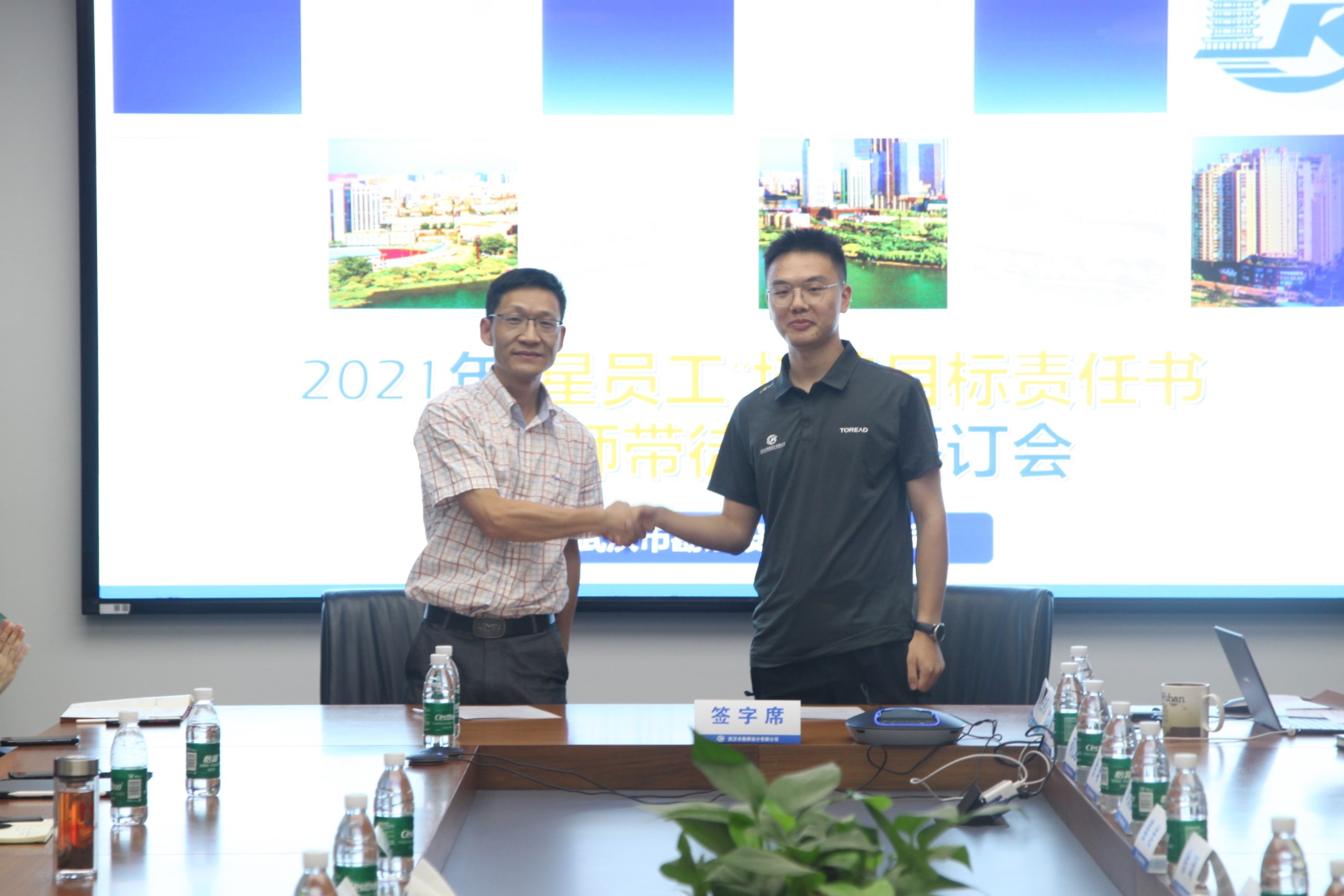 7月20日,公司舉行2021屆“星員工”培養(yǎng)目標(biāo)責(zé)任書暨導(dǎo)師帶徒協(xié)議簽訂會。會上,各部門2021屆新員工與導(dǎo)師簽訂了師徒協(xié)議,標(biāo)志著公司2021屆新員工培養(yǎng)工作正式開始。公司總經(jīng)理施木俊及相關(guān)領(lǐng)導(dǎo)出席會議,新員工部門負(fù)責(zé)人,2021屆“星員工”及導(dǎo)師參加會議。