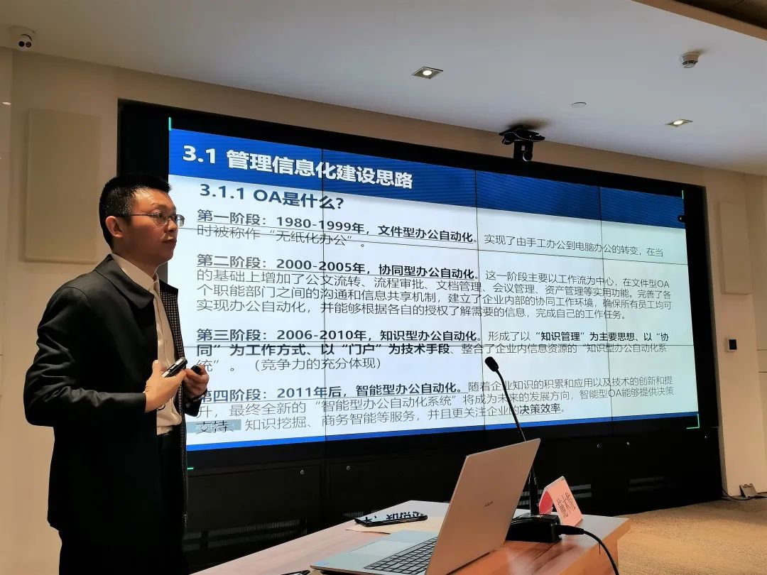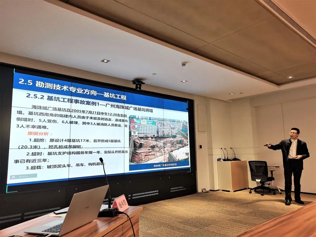 授課進(jìn)入尾聲時(shí),施木俊重點(diǎn)推介了公司在行業(yè)發(fā)展,企業(yè)管理上的優(yōu)勢:在勘測與巖土工程專業(yè)領(lǐng)域,武勘公司能為工程建設(shè)項(xiàng)目的策劃階段提供最優(yōu)解,能精準(zhǔn)把控工程全過程風(fēng)險(xiǎn),實(shí)現(xiàn)項(xiàng)目風(fēng)險(xiǎn)、經(jīng)濟(jì)與時(shí)間相平衡;已積累的分布在武漢各地?cái)?shù)十萬的鉆孔資料和已建設(shè)的數(shù)據(jù)管理平臺,為項(xiàng)目開發(fā)初期高效準(zhǔn)確進(jìn)行成本、工期預(yù)估提供了重要基礎(chǔ)資源;現(xiàn)有的智慧監(jiān)測平臺及自動運(yùn)行的測量機(jī)器人讓項(xiàng)目建設(shè)與運(yùn)行維護(hù)一切盡在掌握;管理信息化更是成為了打破深井,為企業(yè)發(fā)展賦能的重要手段。