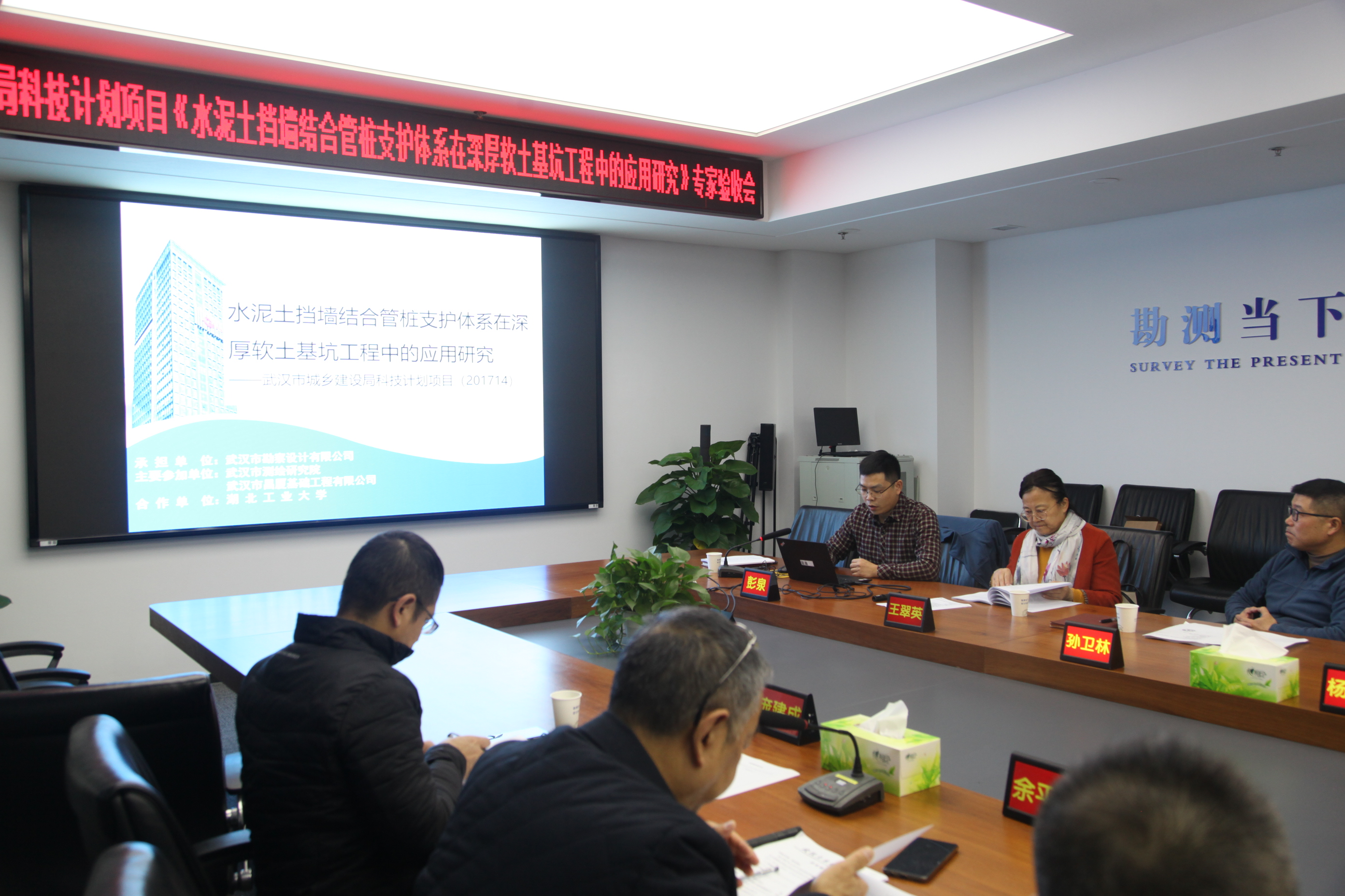 12月15日,武漢市城鄉(xiāng)建設(shè)局組織武漢土木建筑協(xié)會有關(guān)專家組,在公司1717會議室召開科研項目驗收會。公司與武漢市測繪研究院、湖北工業(yè)大學(xué)、武漢市昌廈基礎(chǔ)工程有限責任公司共同承擔完成的《水泥土擋墻結(jié)合管樁支護體系在深厚軟土基坑工程中的應(yīng)用研究》(項目編號 201714)科研項目順利通過驗收。武漢市城鄉(xiāng)建設(shè)局勘察設(shè)計與科技處處長徐蘭,公司總經(jīng)理施木俊等領(lǐng)導(dǎo)參加會議。