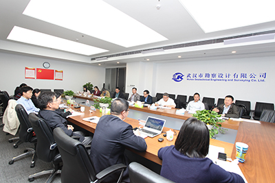 4月13日上午,武漢勘察設(shè)計(jì)協(xié)會(huì)工程勘察專業(yè)委員會(huì)專題座談會(huì)在我司1717會(huì)議室召開,湖北省勘察設(shè)計(jì)協(xié)會(huì)秘書長楊欣蓓,武漢勘察設(shè)計(jì)協(xié)會(huì)副理事長兼秘書長廖建生,武漢勘察設(shè)計(jì)協(xié)會(huì)工程勘察專業(yè)委員會(huì)副主任委員徐楊青、劉亞洲,委員張晴、操經(jīng)偉,副主任委員代表肖玉成,委員代表王澤希、趙景明,公司領(lǐng)導(dǎo)官善友、蔣濤參加了會(huì)議。